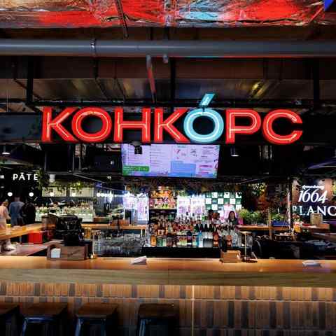 На четвертом этаже находится гастрономический фудмолл «Конкорс », объединяющий десятки заведений с разными кухнями, бар, бильярдный зал, а также маркеты, арена виртуальной реальности и другие развлекательные зоны.