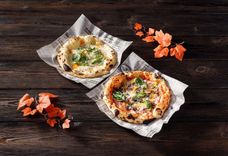 750 г • Пицца 4 сыра (тесто из итальянской муки, сливочный соус, сыр моцарелла, сыр чеддер, сыр с голубой плесенью, сыр пармезан, оливковое и чесночное масло, рукола, базилик), Пицца Капричиоза (тесто из итальянской муки, соус из томатов, сыр моцарелла, ветчина, грибы шампиньоны, перец болгарский, сыр пармезан, оливковое и чесночное масло, базилик)