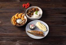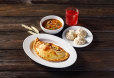 240/220/300 г / 250 мл • Хинкали с индейкой, Хачапури гурули с грибами (закрытый хачапури с начинкой из шампиньонов и имеретинским сыром), Суп Харчо (пряный суп с говядиной, рисом, овощами и специями), Клюквенный морс