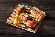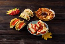 970 г • Кесадилья с цыплеком и пепперони, «Биг Мак» такосы с говядиной, Такосы с креветкой, икрой и копченой сметаной, Домашние начос и соус барбекю