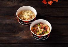 400 г • Токпокки «Колбаски Чили» (клецки «Токпокки», охотничьи колбаски, соус «Сладкий чили», зеленый лук, кунжут), Токпокки «Карбонара» (клецки «Токпокки», бекон, соус «Сливочный», пармезан, кунжут)