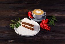 125 г / 200 или 150 мл • Морковный торт, Капучино / Фильтр-кофе на выбор