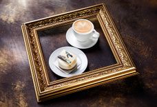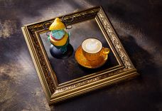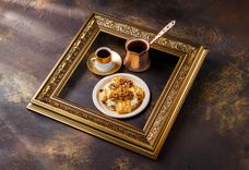 250 г / 200 мл • Восточный крем «Ашта» с баклавой, мёдом и грецкими орехами, Кофе по-ливански • Вдохновлено картиной «Ожидание» Мади Хусейна • Нежная сладость крема и глубокая пряность кофе переплетаются с тишиной и сосредоточенностью полотна Хусейна, словно время замирает в мгновении ожидания.