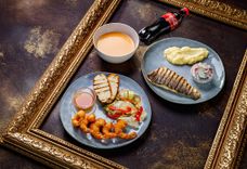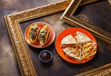 250/350/120 г • Такос с говядиной барбекю и ананасовой сальсой, Кесадилья с цыплёнком-гриль и овощами, с томатным соусом, Картофель фри с соусом барбекю • Вдохновлено картиной «Автопортрет с терновым ожерельем» Фриды Кало • Пряные и насыщенные вкусы с яркой фруктовой ноткой переплетаются, словно страсть и сила в образе Фриды Кало, где боль и красота сливаются в гармоничное целое.