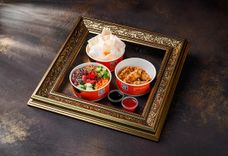 318/120/55 г • Поке с тунцом, Гедза с курицей, Креветочные чипсы • Вдохновлено картиной «Таитянские женщины» Поля Гогена • Каждый ингредиент сета — как штрих кисти Гогена, передающий тропическое тепло и экзотическую атмосферу.