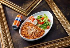 250/50/100 г / 330 мл • Паста болоньезе, Брускетта с сыром моцарелла и помидорами, Салат со свежими овощами и зеленью, Фанта/спрайт (на выбор) • Вдохновлено картиной «Итальянский полдень» Карла Брюллова • Тёплое солнце и лёгкая итальянская непринуждённость переплетаются в каждом элементе сета — словно полдень Брюллова, полный света, радости и спокойной гармонии.