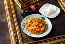 450/20 г / 500 мл • Ми Сао Хай Шан: яичная вермишель с овощами, креветками, кальмарами и устричным соусом, Чипсы «Фонг том», Кока-кола/фанта/спрайт (на выбор) • Вдохновлено картиной «Портрет четы Арнольфини» Яна ван Эйка • Тонкая гармония и внимательная симметрия элементов сета перекликаются с изяществом и детализацией «Портрета четы Арнольфини», где каждый компонент сохраняет своё место в идеальной композиции.